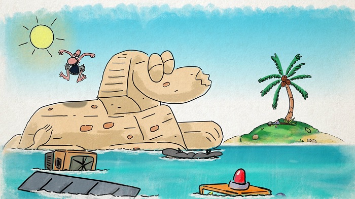 Siempre. Es inevitable. Suelo pensar de manera muy visual. Si el proyecto ya está en marcha y hay diseños de personajes y decorados la cosa es más sencilla. Sabes que tal personaje lleva, por ejemplo, una riñonera en forma de patata o de cierto color, o que en X decorado hay una escultura horrible de un babuino. Tener consciencia de estos elementos al momento de escribir enriquecen el potencial de la escena: un personaje puede bromear por la patata o hacer algún comentario respecto a aquella putrefacta escultura. Pero cuando se está en un early development sin la parte visual definida aún, hay toda una puesta en escena mental que hago antes de ponerme con la escena: ¿Qué tanto movimiento pueden tener los personajes en el decorado? ¿Dónde se sientan? De hecho: ¿Hay sillas, un sofá, una bala de paja? ¿La nevera tiene el congelador en la parte superior o inferior? Y así con todo. Esto hay que visualizarlo y como no hay dos personas en el mundo que interpreten las cosas de igual manera (no, no las hay), hay que dejarlo muy claro en la descripción de acciones. Existe toda una puesta en escena mental antes de comenzar a escribir una escena. Y el tipo de animación también va a condicionar eso. Un mismo gag de humor visual, no va a funcionar de la misma manera en una animación 3D, en cut out o en stop motion, por lo que se debe tener consciencia de los “límites” de cada formato.