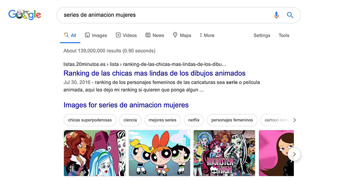 No hay más que buscar en Google “series de animación mujeres” para darnos de bruces con contenido tan interesante (entiéndase la ironía) como “ranking de las chicas más lindas de los dibujos animados”, “las 35 mujeres de dibujos animados más sexys de la TV” o imágenes de Las Supernenas (The Powerpuff Girls) y Monster High.